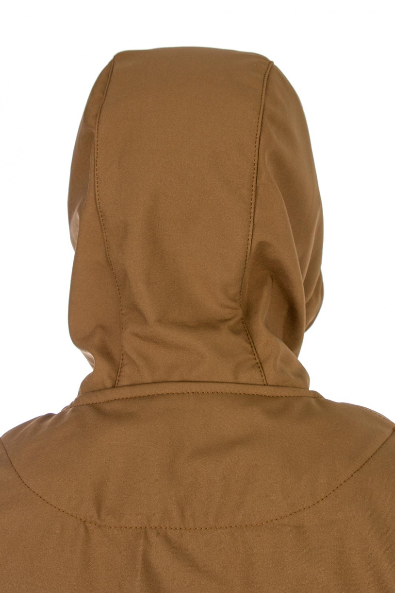 Низ укороченной куртки собран на широкую простроченную резинку, обеспечивая комфортное прилегание по бедрам. Капюшон регулируется по овалу лица. Застежка-молния защищена внутренней ветрозащитной планкой. Манжеты рукавов снабжены широкой резинкой, которая не передавливает и не натирает кожу, и в тоже время достаточно плотная, чтобы не пропускать ветер. На куртке два верхних накладных кармана с клапанами на кнопках и два нижних прорезных с листочками без застежки.