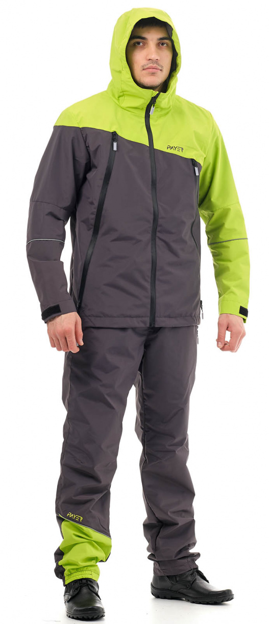 Летний костюм «Бейс» (ТМ PAYER) – новинка в туристической линейке. Костюм изготовлен из мембранной ткани с показателями 10000/10000, что позволяет отлично справляться с отводом влаги и защищать туриста в дождливую погоду. А специальные влагозащищенные нити COATS препятствуют проникновению влаги в швах изделия. Яркий салатовый цвет и светоотражающие элементы позволят выделится на сером фоне и гор, и асфальта.