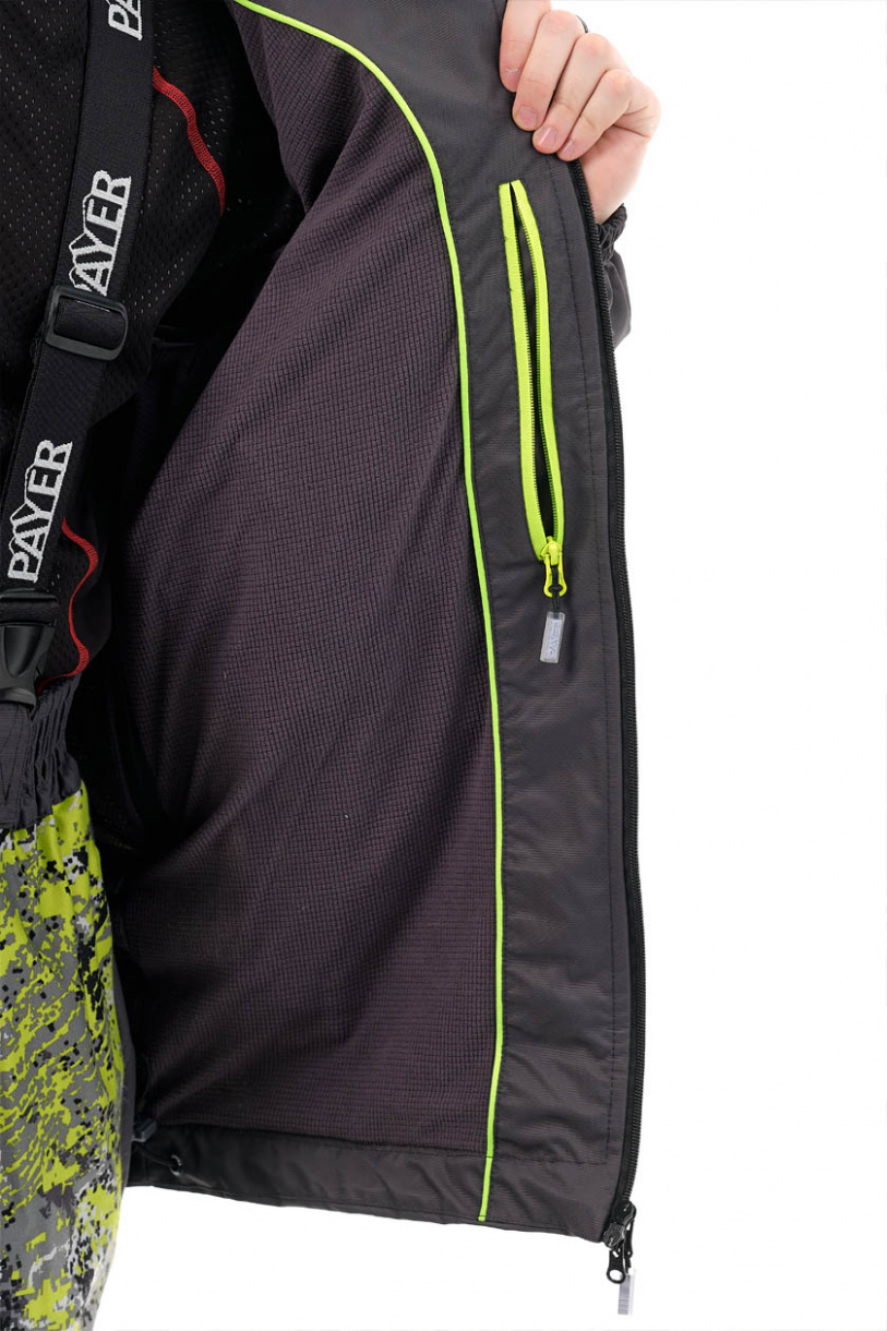 Все карманы прорезинены. Два на куртке застегиваются на молнию и разделены на два специальной перегородкой. Также есть небольшие карманы на рукавах и на боковых сторонах брюк.