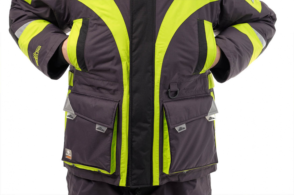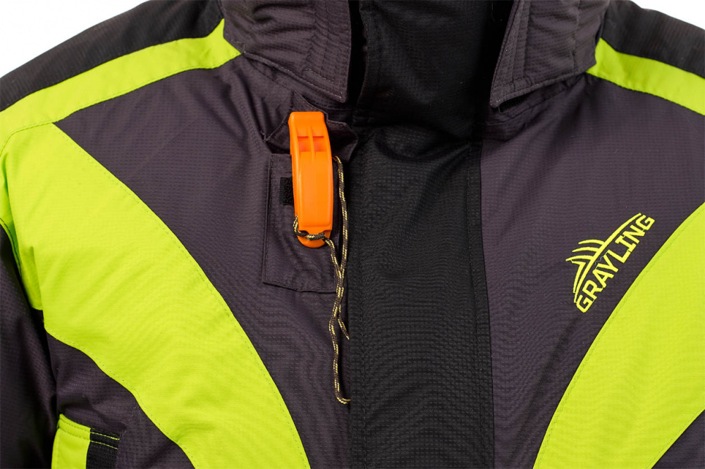 Костюм «Флагман-поплавок» (ТМ GRAYLING) - новинка в рыболовной линейке костюмов от компании Novatex. Специальное наполнение костюма позволяет удержаться на воде в течении короткого периода времени, при этом совершенно не стесняя движений. По низу куртки, рукавов и брюк имеются вставки из сетки для быстрого отвода воды. В специальном нагрудном кармане - свисток яркого оранжевого цвета.