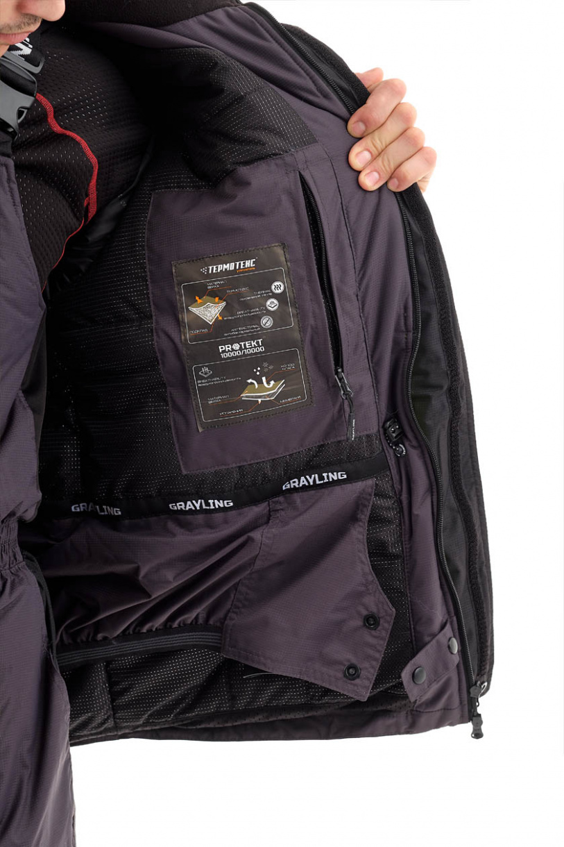 Толщина утеплителя костюма рассчитана на достаточно сильные морозы – температура комфорта минус 25 градусов, экстремальная температура использования – минус 45 градусов. Мембранная ткань защитит от ветра, а фольгирован