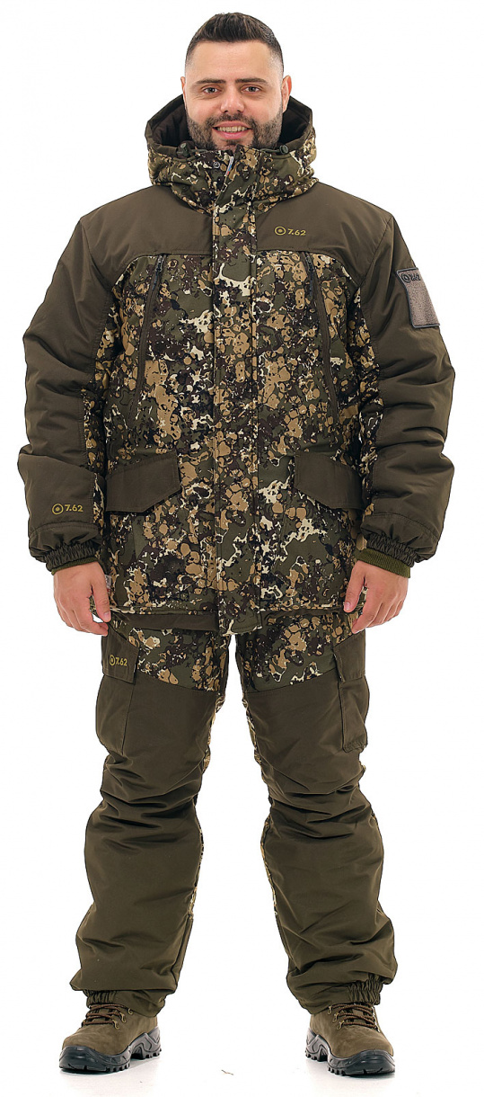 Костюм «Горка» Зима (ТМ «7.62») - разработан на основе знаменитого военного костюма «Горка». В этом костюме гармонично сочетается проверенный временем анатомический крой и современные материалы. Современная мембранная ткань алова обладает отличными ветро- и влагозащитными свойствами, а качественный утеплитель термотекс дает ощущение комфорта при морозе в 30 градусов. Температура экстрим минус 45 градусов.