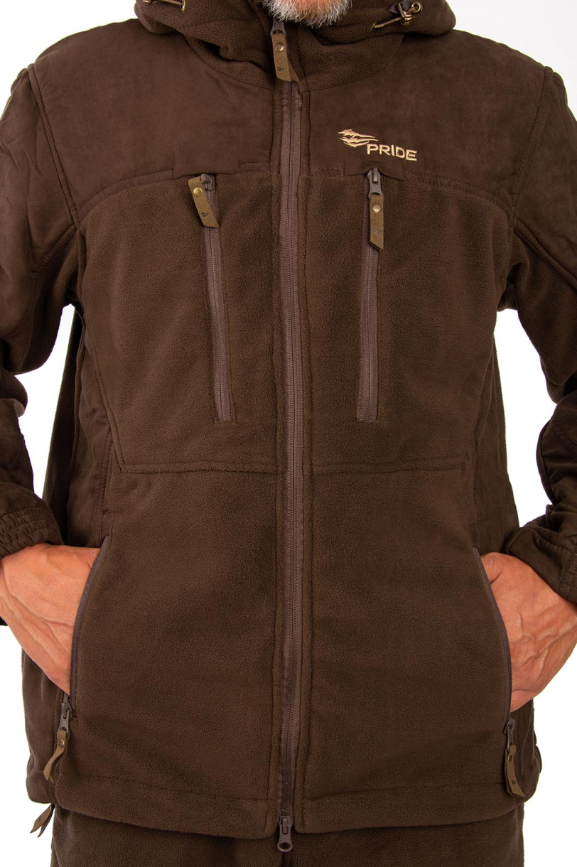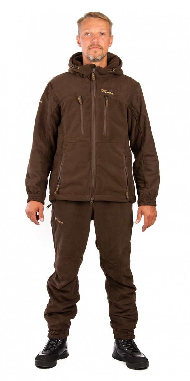 Флисовый костюм Yakut (Якут) выполнен из плотного флиса с усилениями из искусственной замши в местах повышенного износа. Флисовый костюм можно использовать как эффективный утепляющий слой под мембранную одежду для очень холодной погоды, а также применять как самостоятельное изделие в прохладную безветренную погоду. За счет комфортности материала костюм Yakut будет оптимальным выбором для отдыха в перерывах между охотой.