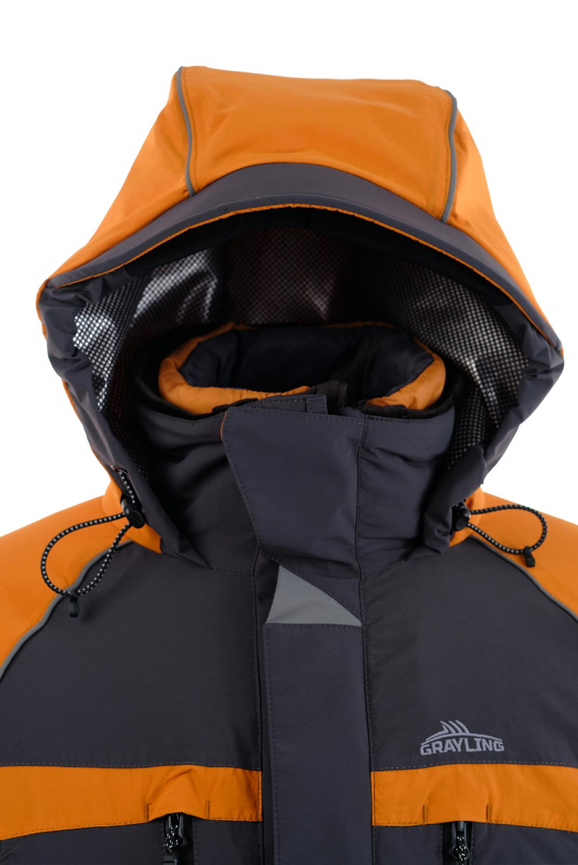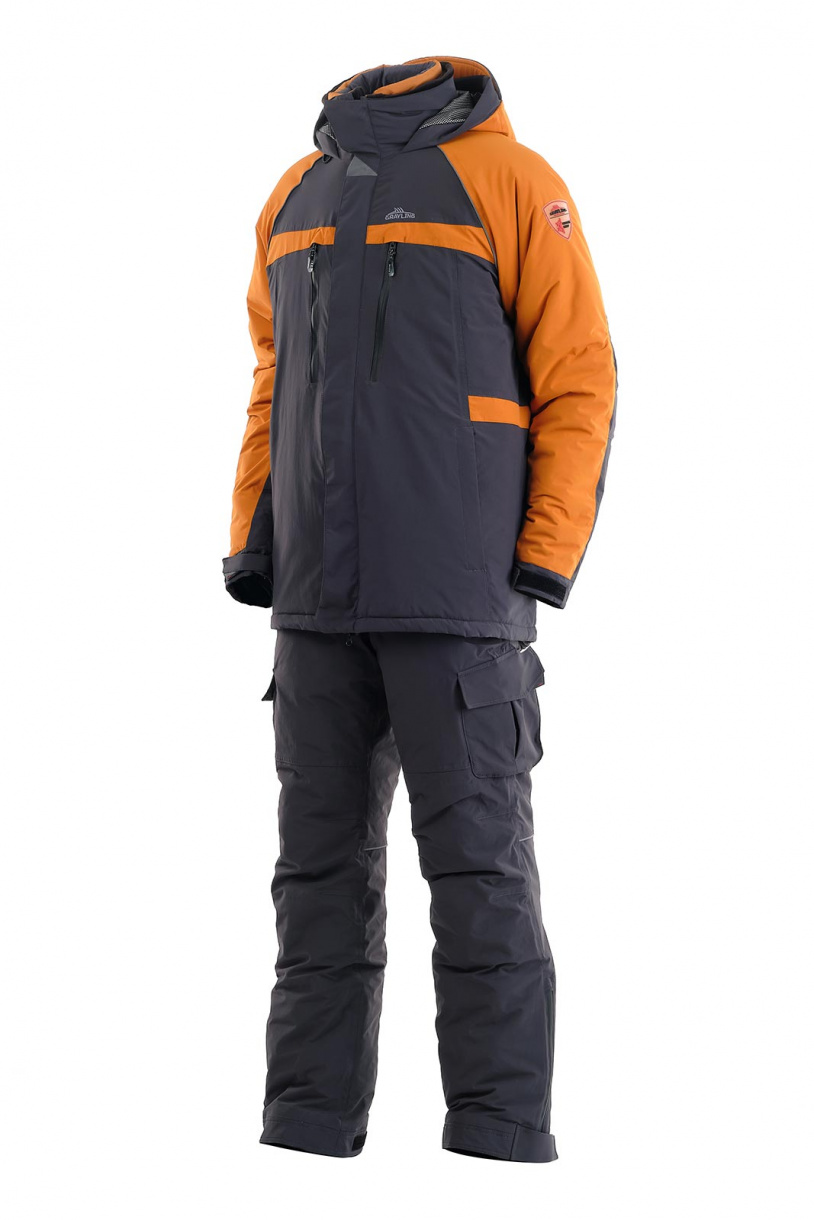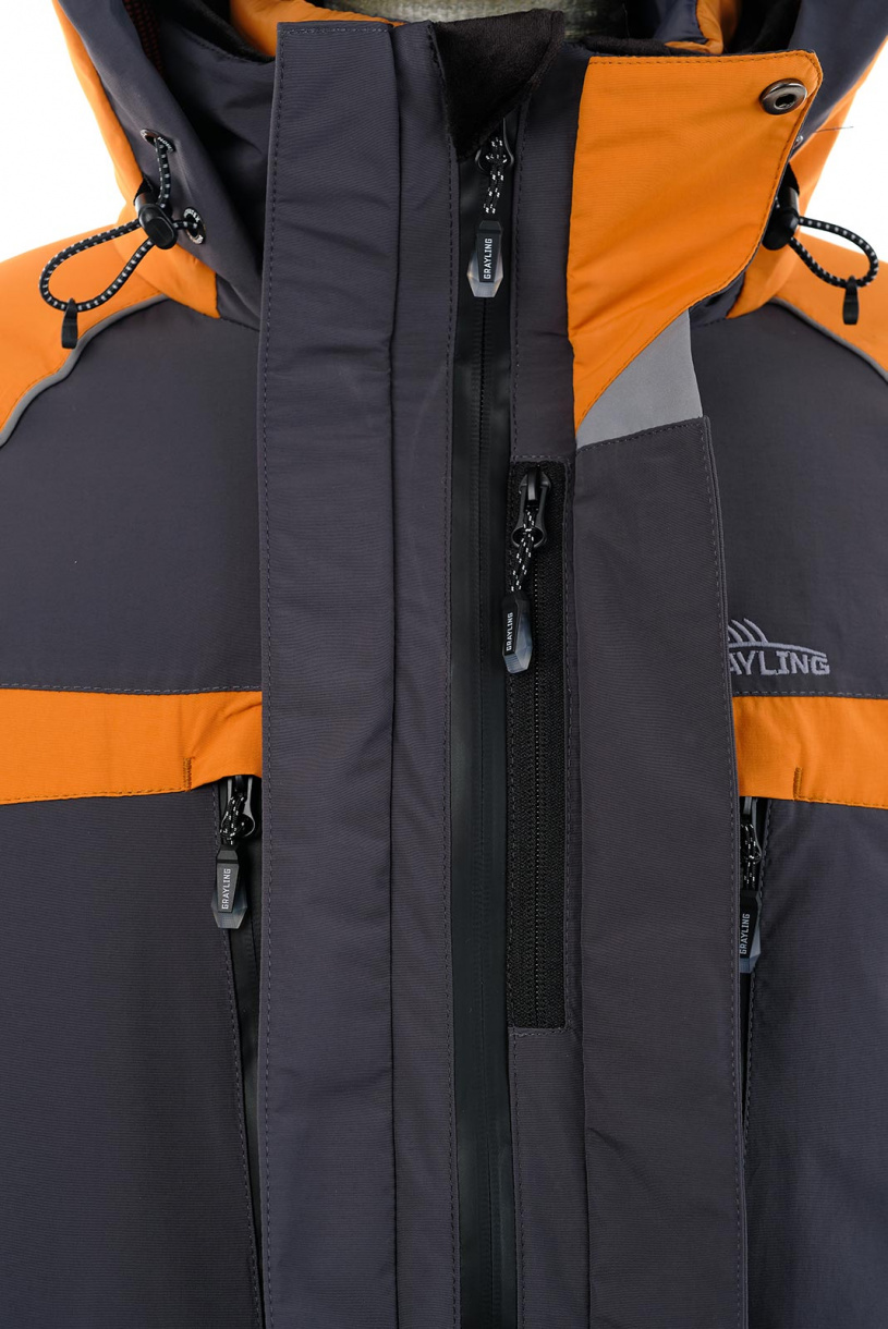 Зимний рыболовный костюм Riverside в цвете серый-горчица с дополнительной двухсторонней курткой-подстежкой, которая может использоваться как самостоятельное изделие.