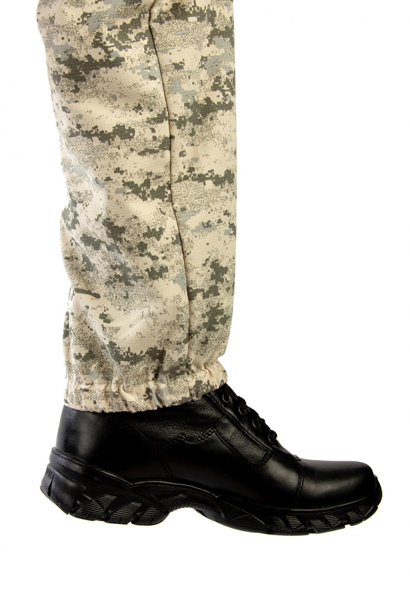 Пояс брюк полностью эластичный, дополнен шлевками. Низ брюк собран на резинку. Два вместительных объемных набедренных кармана на молниях и два кармана у пояса без застежки.