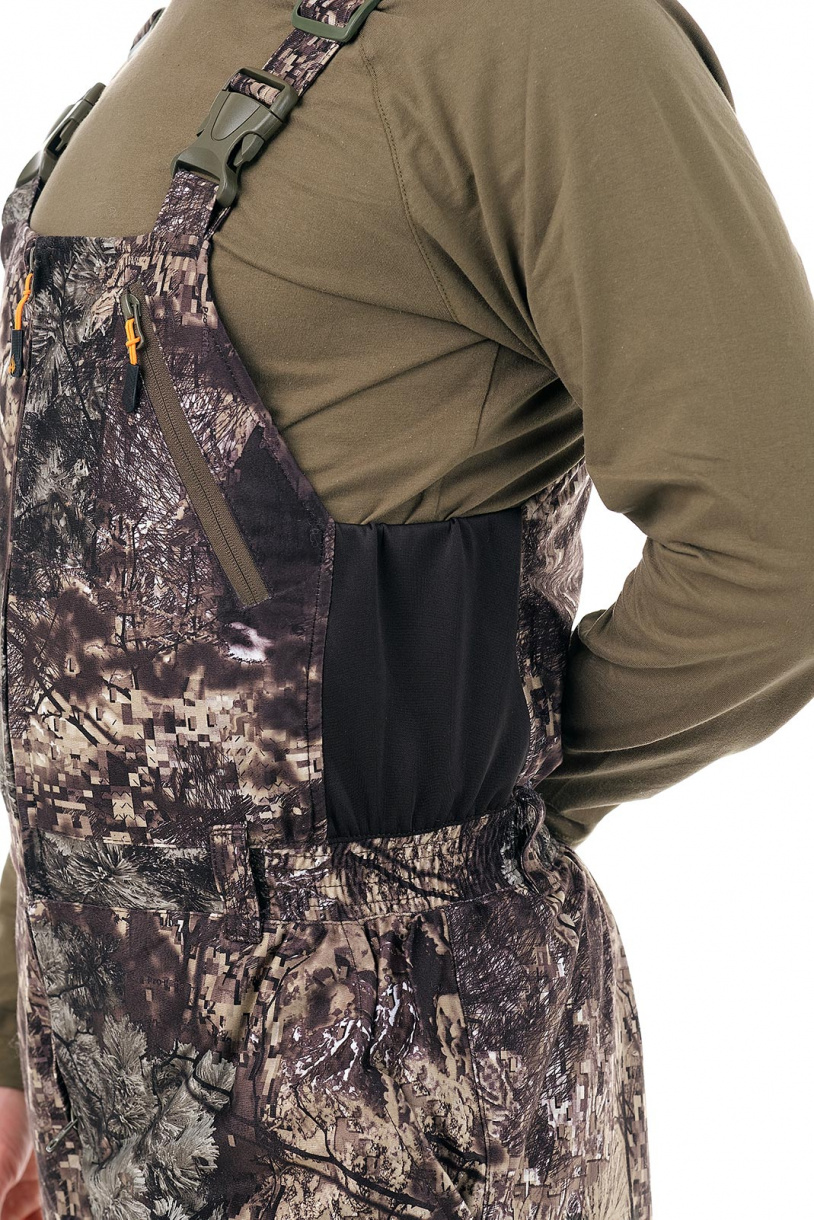 Высокие брюки-полукомбинезон собраны на