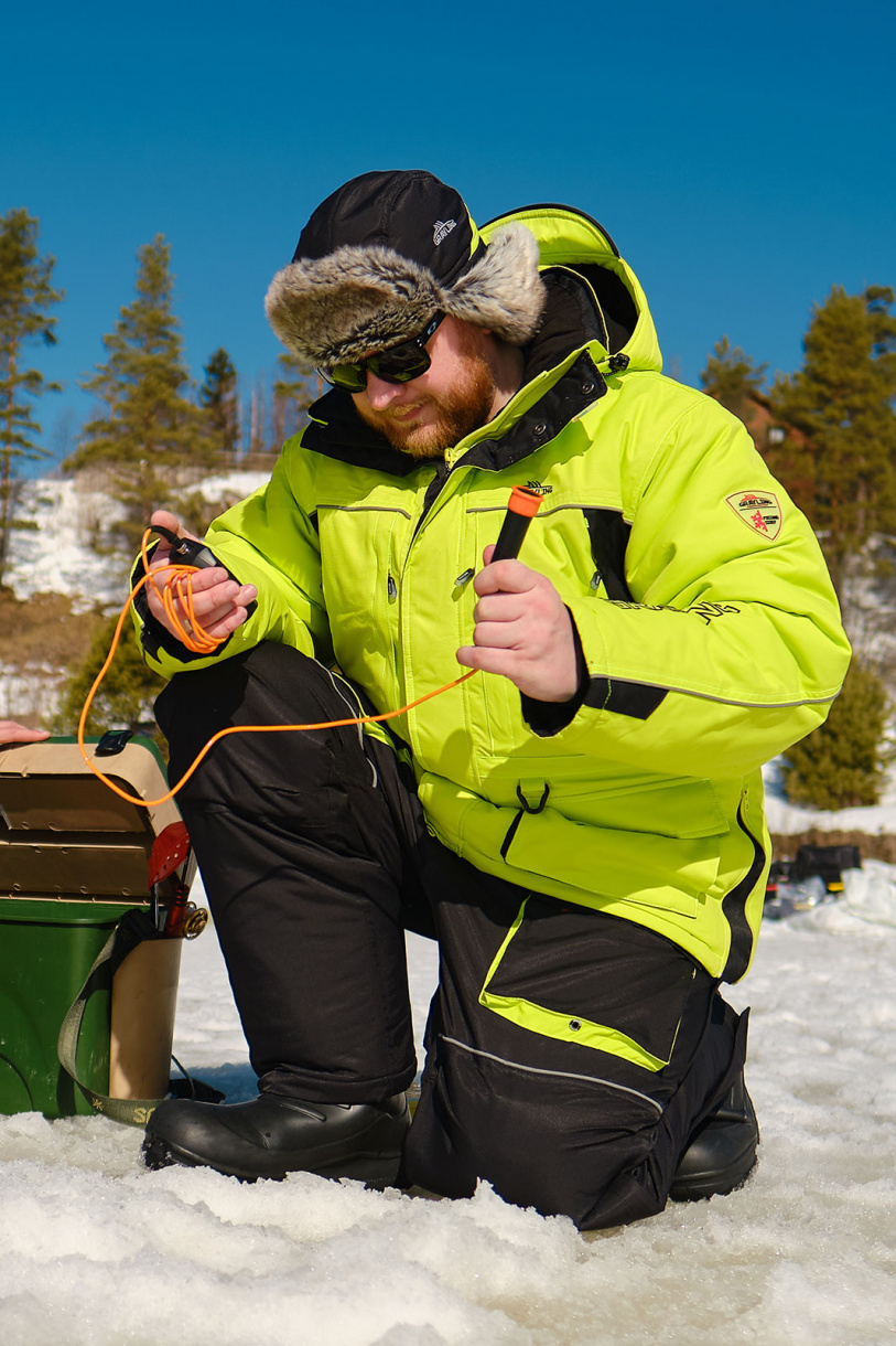 Созданный для настоящих любителей зимней рыбалки и активного отдыха, костюм «Селигер» кошачий глаз, лайм-черный