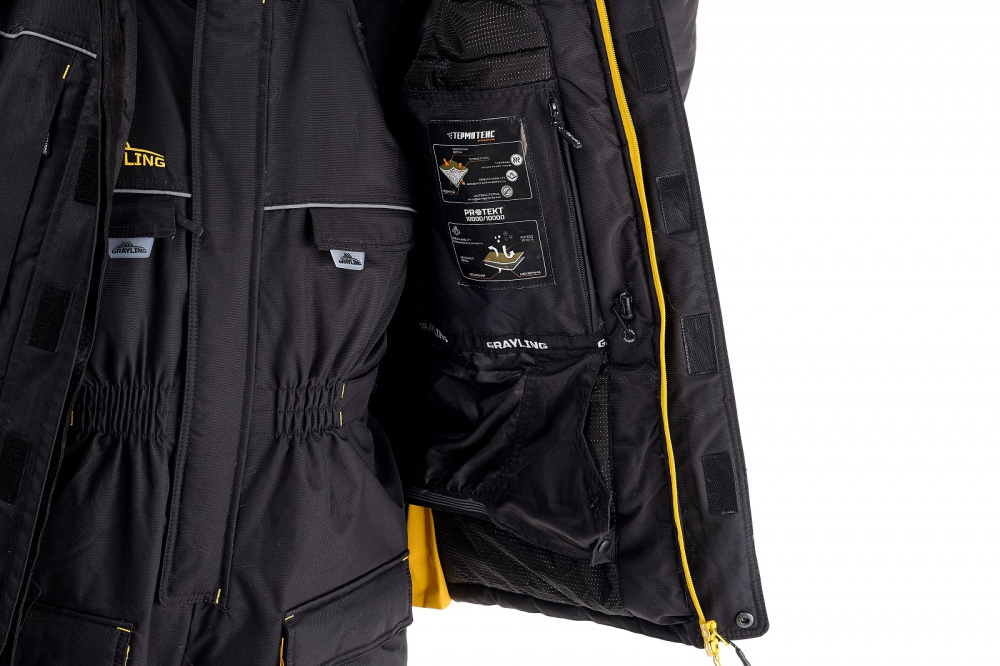 Костюм «Селигер» (ТМ GRAYLING) относится к элитной рыболовной экипировке. Универсальный зимний костюм специально адаптирован для людей, активно увлекающихся рыбалкой. Костюм состоит из длинной куртки и полукомбинезона анатомического кроя. Для изготовления костюма «Селигер» применяют особо прочную современную нейлоновую ткань «кошачий глаз» с мембранным покрытием. Для отделки и армирования используется двойной слой ткани. Защита от холода достигается за счет применения современного утеплителя термотекс - температура комфорта минус 30 градусов, температура экстрим минус 45 градусов. Фольгированный подклад нового поколения обеспечивает оптимальный микроклимат: фо