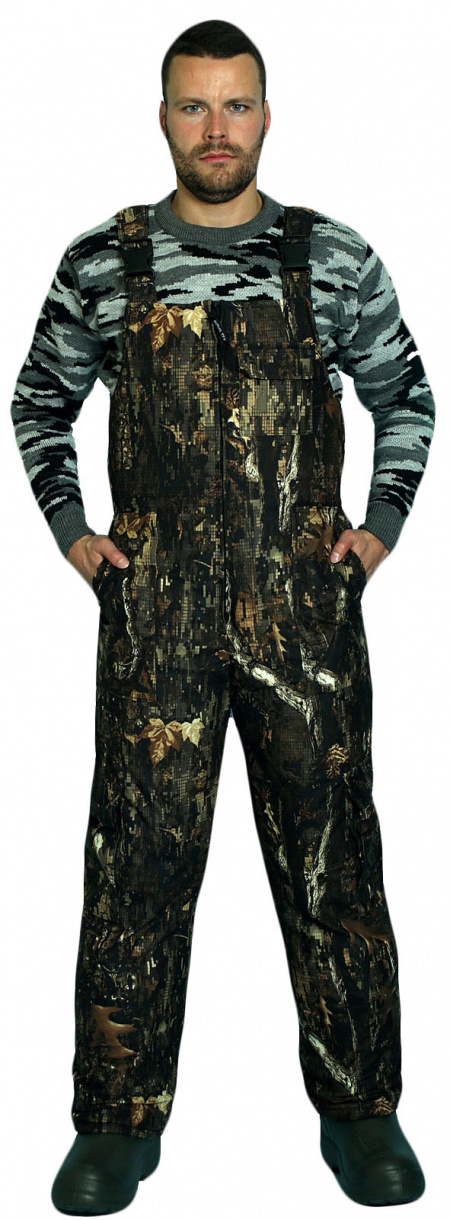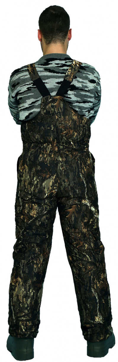 Полукомбинезон с регулируемыми бретелями, с застежкой на двухзамковую молнию. Пояс спинки притален при помощи эластичной тесьмы. Низ брюк регулируется по объему липучкой. Три функциональных кармана.
