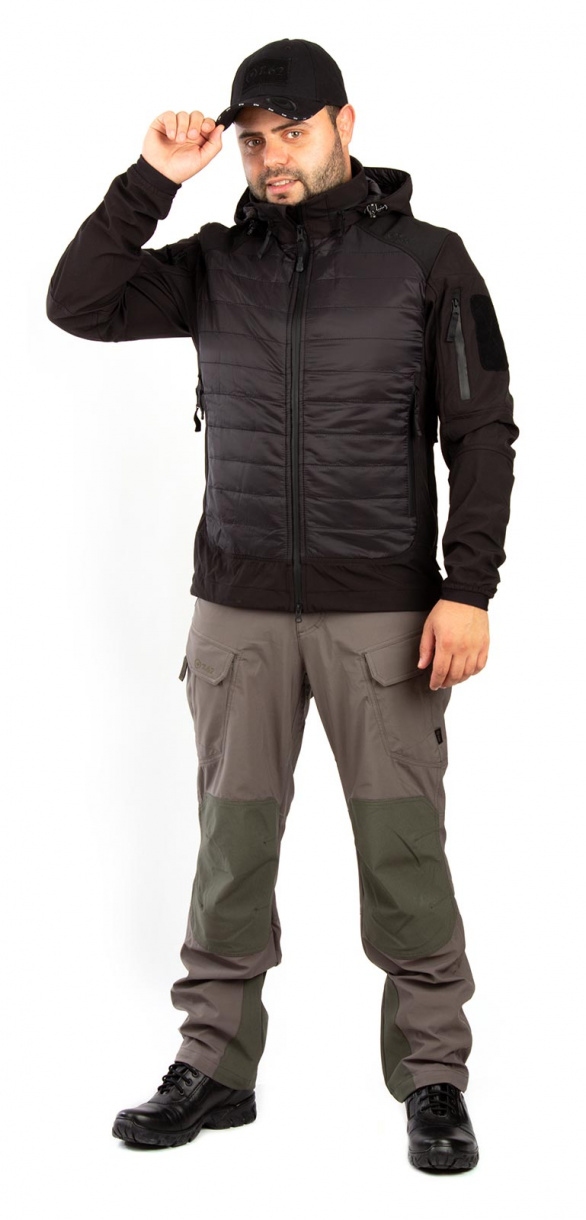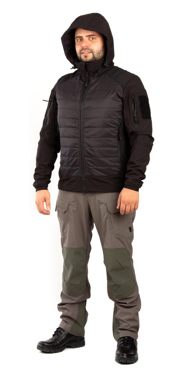 В «Бастионе»  использован софт-шелл на трикотаже. Материал очень легок и отлично гнется.