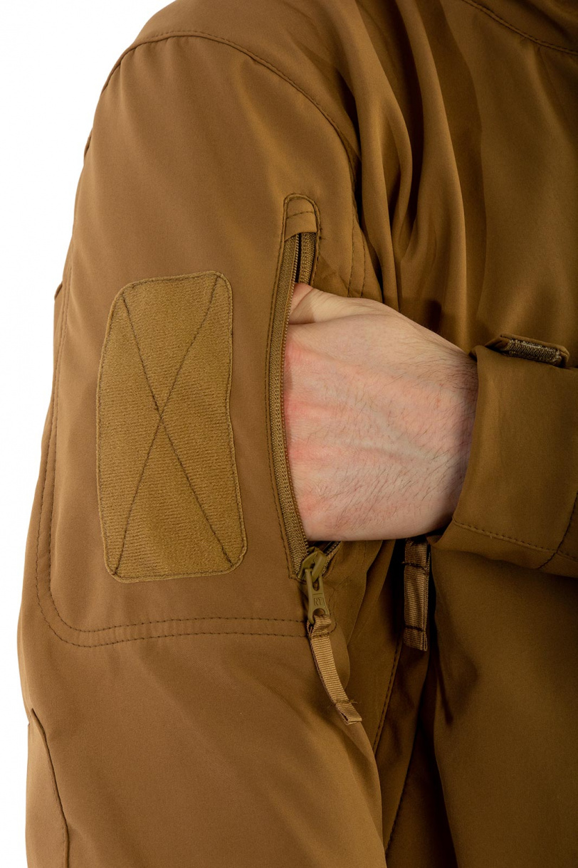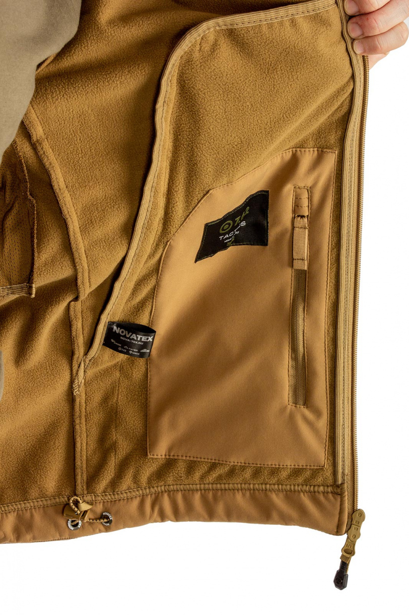 Демисезонная куртка «Джетта» тактического направления (ТМ 7.62) из современного высокотехнологичного материала, состоящего из трёх спрессованных между собой слоев различного назначения. Приятный на ощупь, мягкий внутренний слой из флиса удерживает тепло, хорошо пропускает воздух и отводит чрезмерную влагу от тела. Излишки влаги впитывает и выводит мембрана (средний слой), которая к тому же не пропускает влагу из окружающей среды, защищает от ветра. Тефлоновая обработка верхнего слоя позволяет каплям воды и загрязнениям легко скатываться с поверхности, уменьшая таким образом количество стирок. Изделие при этом имеет небольшой вес (компактное) и эластичность (не стесняет движение). Для пошива этой куртки использовались специальные влагозащищенные нити COATS, препятствующие проникновению влаги в швы изделия.